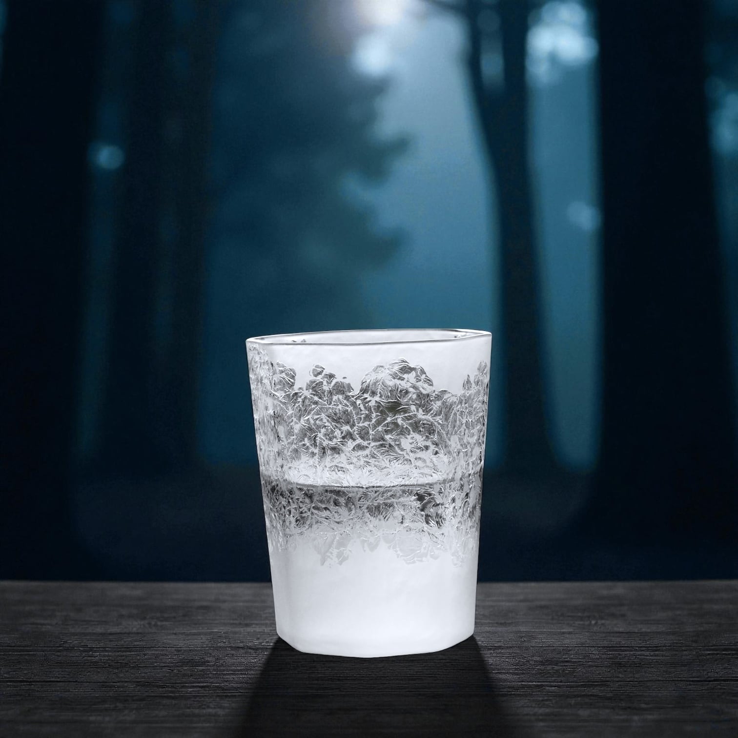 もう一つは、グラス下部を包む、どこまでも深い白色の静かな雪景色。厳選された堅牢な硝子が持つ、現代的な静謐さです。