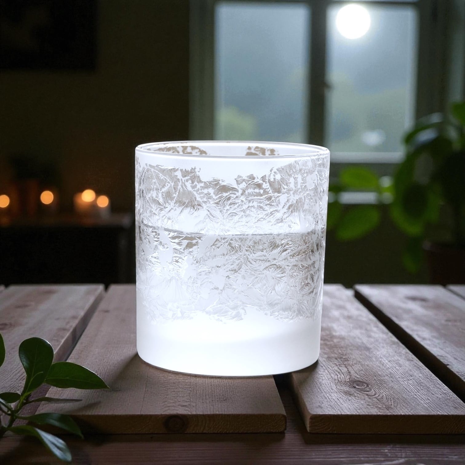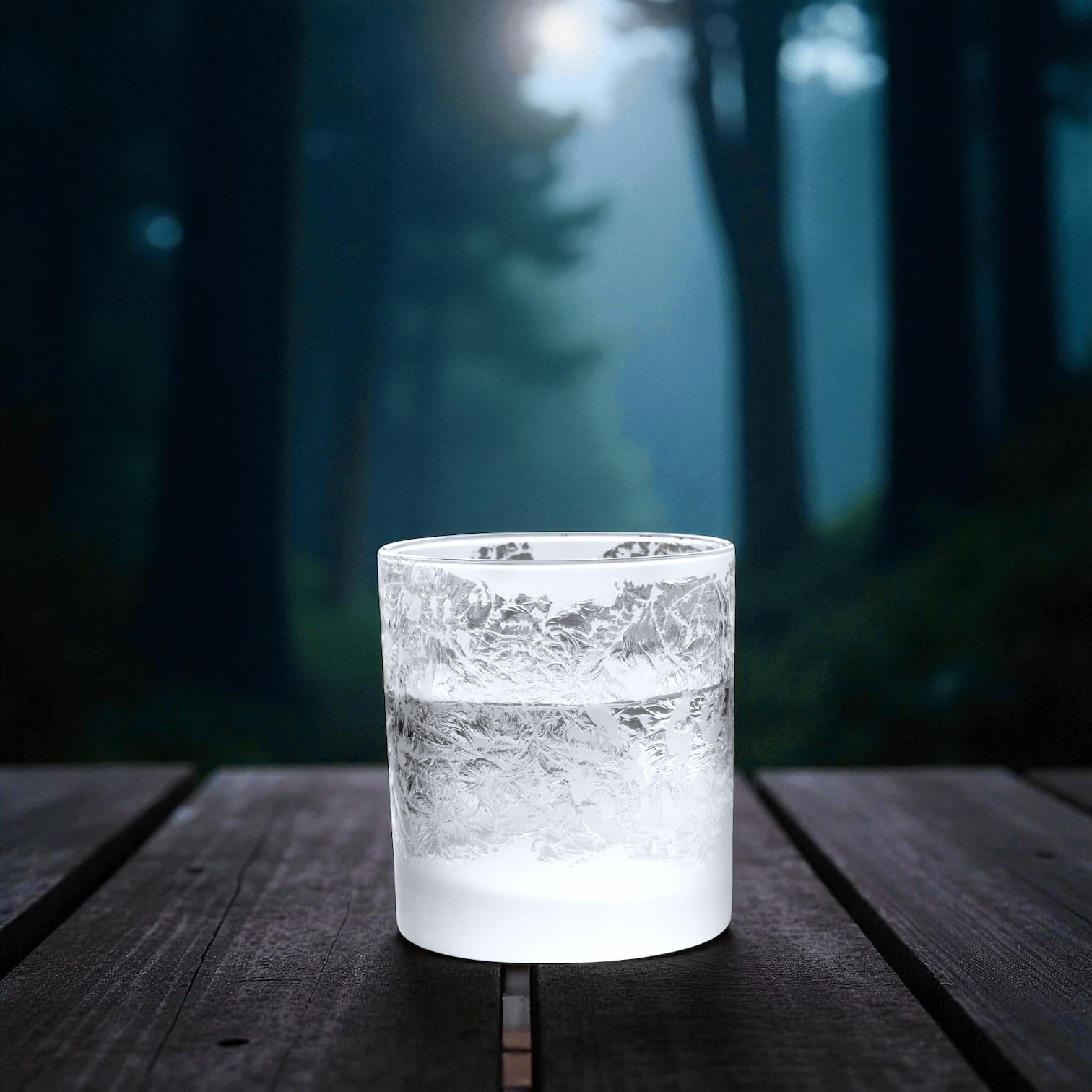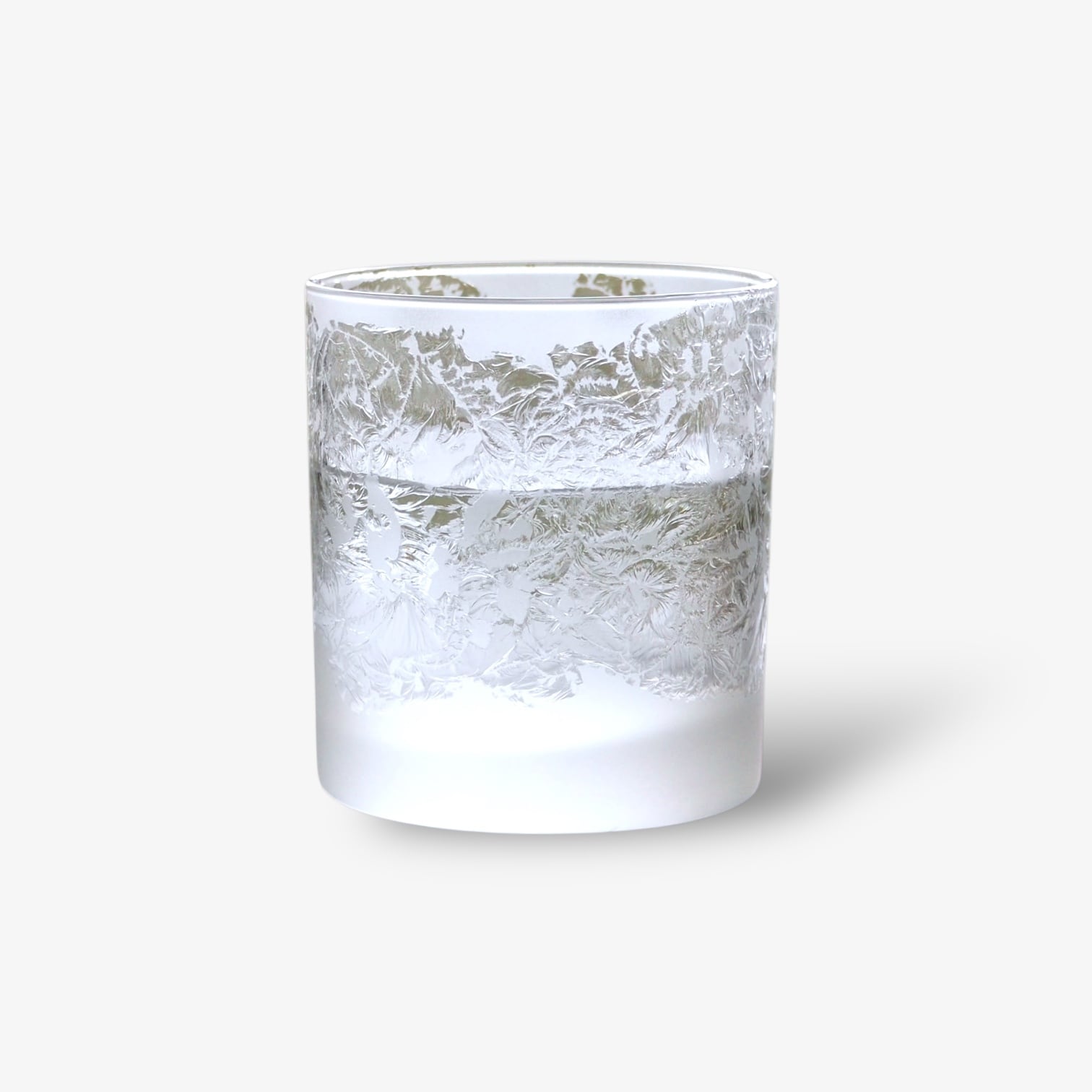 もう一つは、グラス下部を包む、どこまでも深い白色の静かな雪景色。厳選された堅牢な硝子が持つ、現代的な静謐さです。