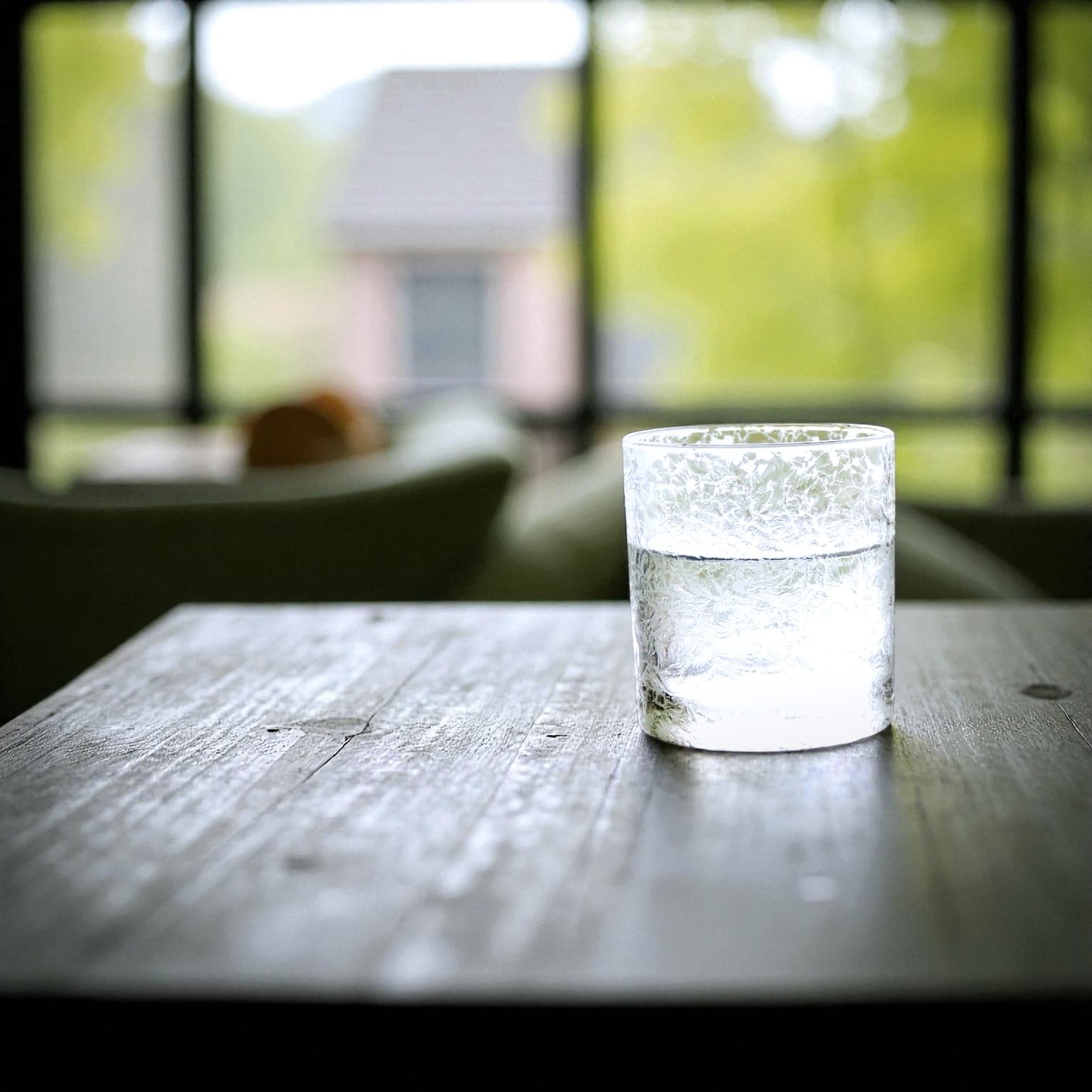 このグラスは、さまざまな飲み物をお楽しみいただけます。朝の一杯のレモン水、昼の緑茶、夕日と共に飲むローズヒップティー、月夜を眺めて嗜むウイスキー、寝る前のミネラルウォーター。どんなときもあなたの生活と共に歩んでくれるグラスです。